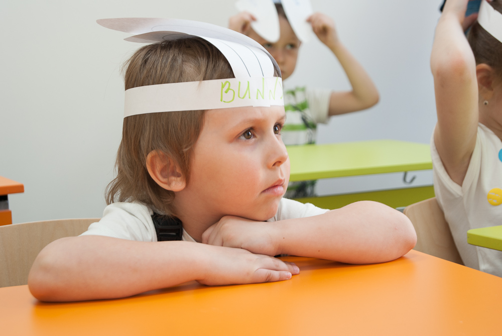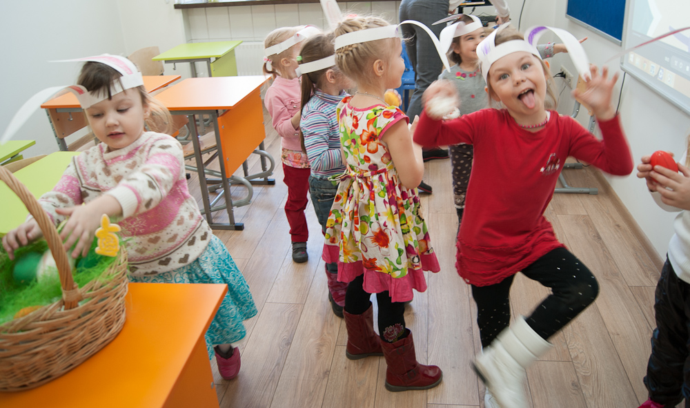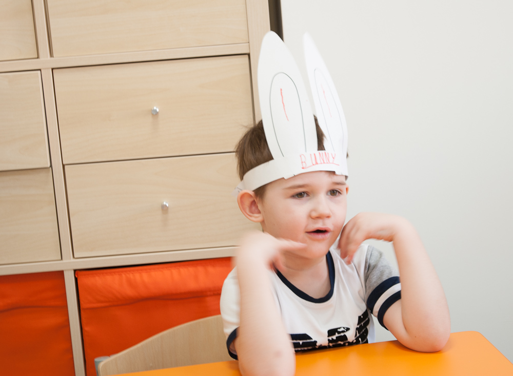 Ребята превратились в самых настоящих Пасхальных кроликов, искали спрятанные по всей школе пасхальные яйца, пели – конечно же, на английском языке – песенку Пасхального кролика, танцевали его задорный танец, выучили новые слова и с удовольствием позировали нашему пасхальному фотографу.